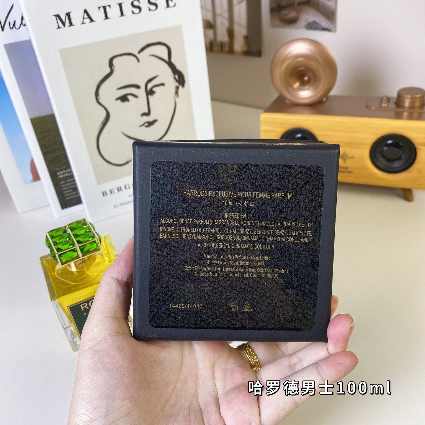 Bitter orange, juniper, ambergris, styrene, lime, bergamot, cashmeran, lemongrass, vetiver, oakmoss, geranium, violet, neroli, patchouli, labdanum